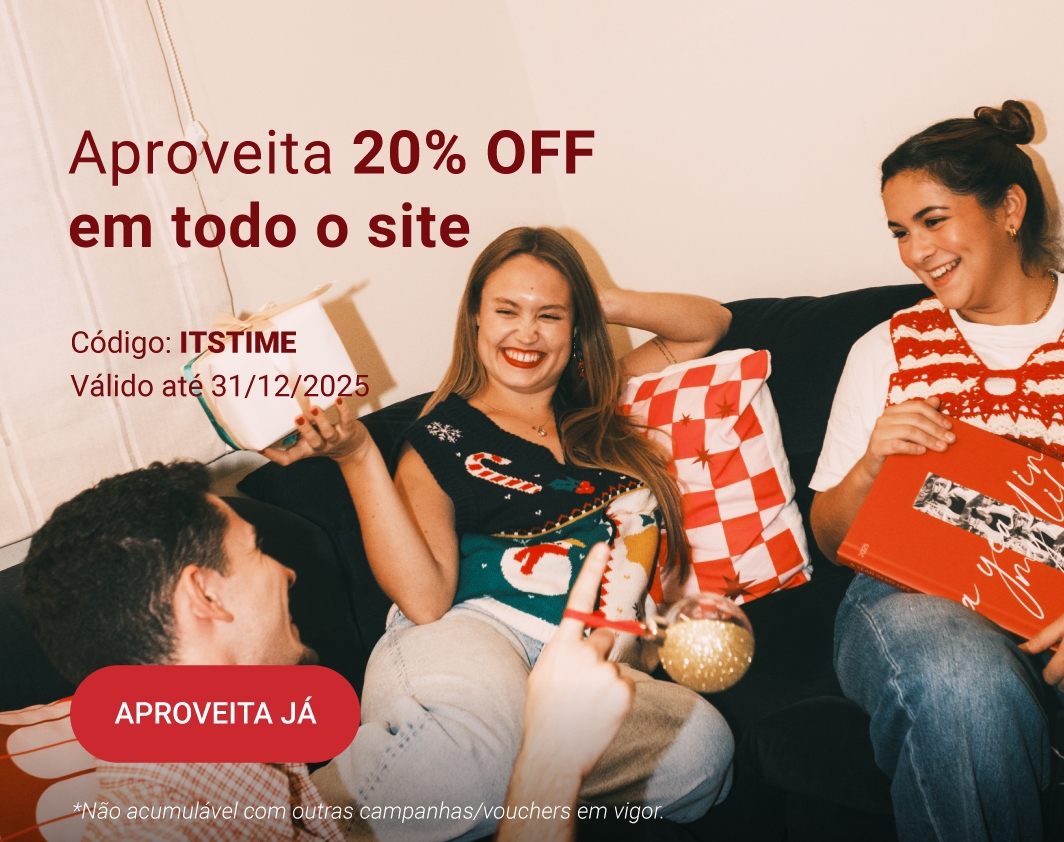 Campanhas não acumuláveis com outras campanhas/vouchers em vigor. Packs de Fotos Standard 10x15cm e 15x20cm, Fotos 24h, Telas Sintéticas e produtos de Stock Off não incluídos.